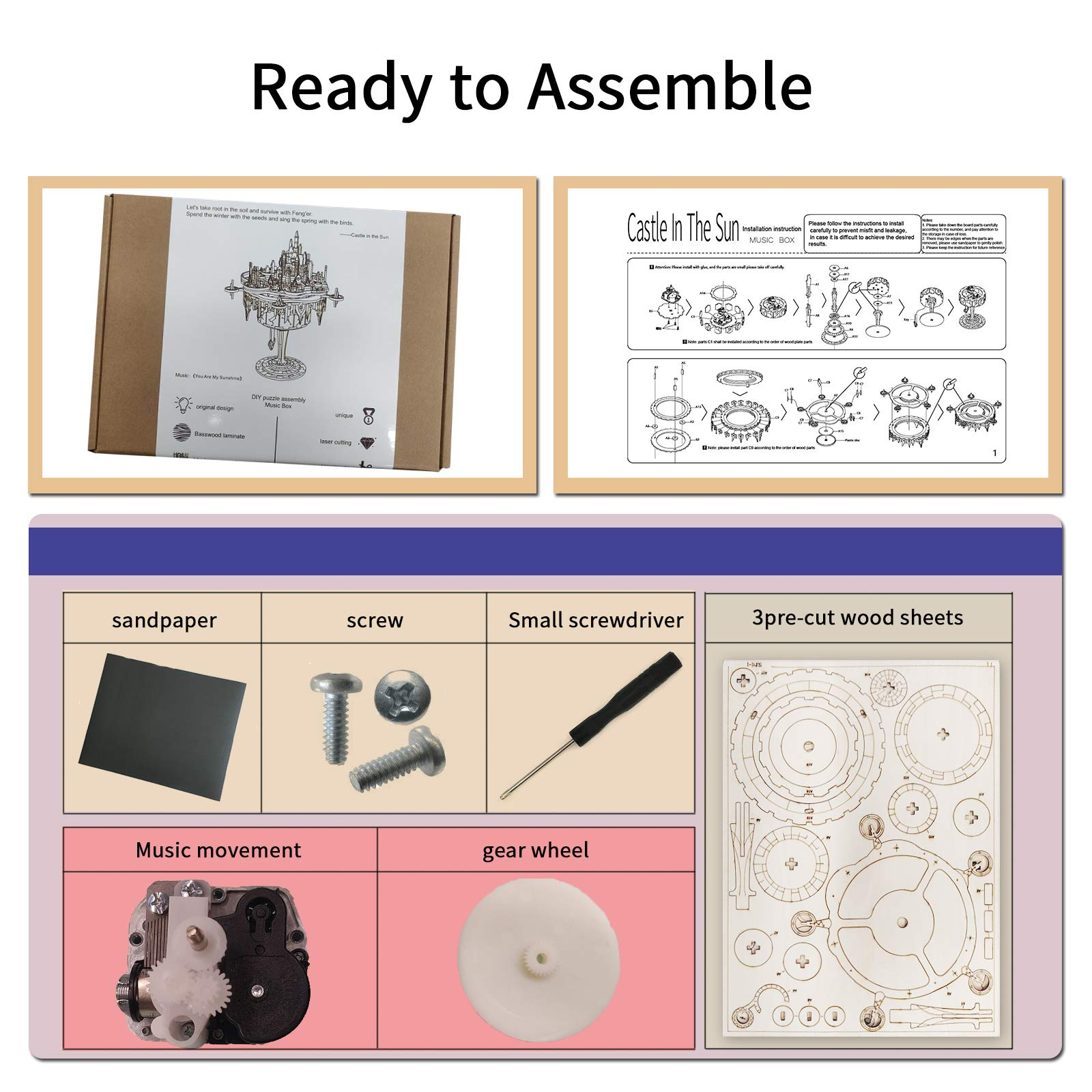 3D Wooden Puzzles Music Box kits You are My Sunshine Castle Building Model DIY Crafts Birthday Gift for Women